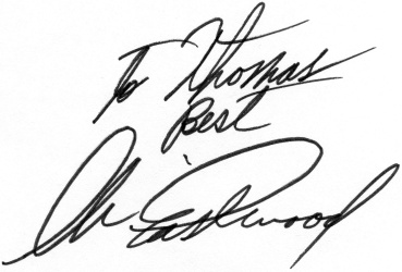 comments at the Academy Awards 2005 he thanked his mother, who was with him this evening for her good genes as you can see above, he not only signed a photo for me, he also signed the letter I wrote to him he was the man with no name and Dirty Harry...what else do I need to say...he's a living legend his father is Clinton Eastwood, Sr. (* 1906 † 1970), and his mother is Ruth Runner (* 1909 † 2006) he has a younger sister, Jeanne (* 1934) his first wife was Maggie Johnson (1953 - 1978, divorced) he has a daughter, actress/model Alison Eastwood (* 22. May 1972), and a son, musician Kyle Eastwood (* 1968) with Maggie Johnson he has a granddaughter, Graylen Eastwood (* 1994) from his son, Kyle he was married to Dina Ruiz (* 1965) since (1996 - 2014, divorced) he has a daughter, Morgan (12. December 1996) with Dina Ruiz he has a daughter, Francesca Ruth (* 07. August 1993) with Frances Fisher (* 1952) he has a daughter, Kimber (* 1964) with Roxanne Tunis he has a grandson, Clinton Eastwood (* 1984) from his daughter Kimber he has a daughter, Kathryn (* 02. February 1988) and a son, Scott (* 21. March 1986) with Jacelyn Reeves he was elected mayor of Carmel-by-the-Sea, California from 1986 - 1988 |