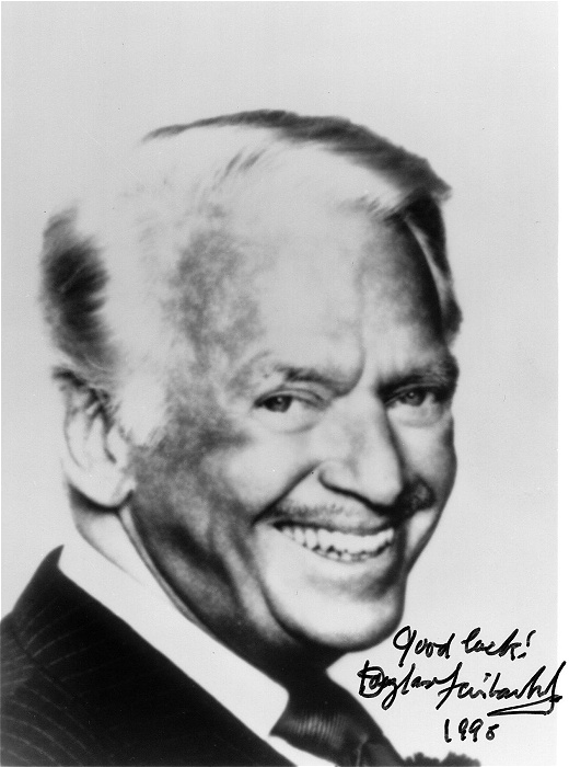comments I liked him most in 'Catherine the Great' (1934), 'The Rage of Paris' (1938), 'The Exile' (1947) and 'Ghost Story' (1981) his father was the famous actor/director/screenwriter/producer Douglas Fairbanks (*1883 †1939), and his mother was Anna Beth Scully Fairbanks, Jr. had his first movie role as a bit part next to his father in 'The Three Musketeers' (1921) his father was one of the founders of United Artists in 1919...the others were director D.W. Griffith, actress Mary Pickford and actor/director/screenwriter/producer and Fairbanks, Sr. best friend Charles 'Charlie' Chaplin his father also was one of the 36 founders of the AMPAS (Academy of Motion Picture Arts and Sciences) Fairbanks, Jr. was married to actress Joan Crawford (03. June 1929 - 12. March 1933, divorced) and Mary Hartford (1939 - 1988, her death) Vera Shelton was his last wife since 1991 until his death he became the first American officer to command a British flotilla of raiding craft during a commando operation in WW II. he served under Adm. Lord Louis Mountbatten, who later introduced him to his nephew, Prince Philip, the husband of Queen Elizabeth he gave a big party for his daughter Daphne in 1957, and the Queen, Prince Philip and Princess Margaret stayed until dawn |